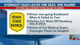 One dead, one injured after Mills County crash - WOWT The driver, identified by Iowa State Patrol as 28-year-old Dane Carlson of Plattsmouth, Neb., was pronounced dead at the scene. A passenger in the car ...